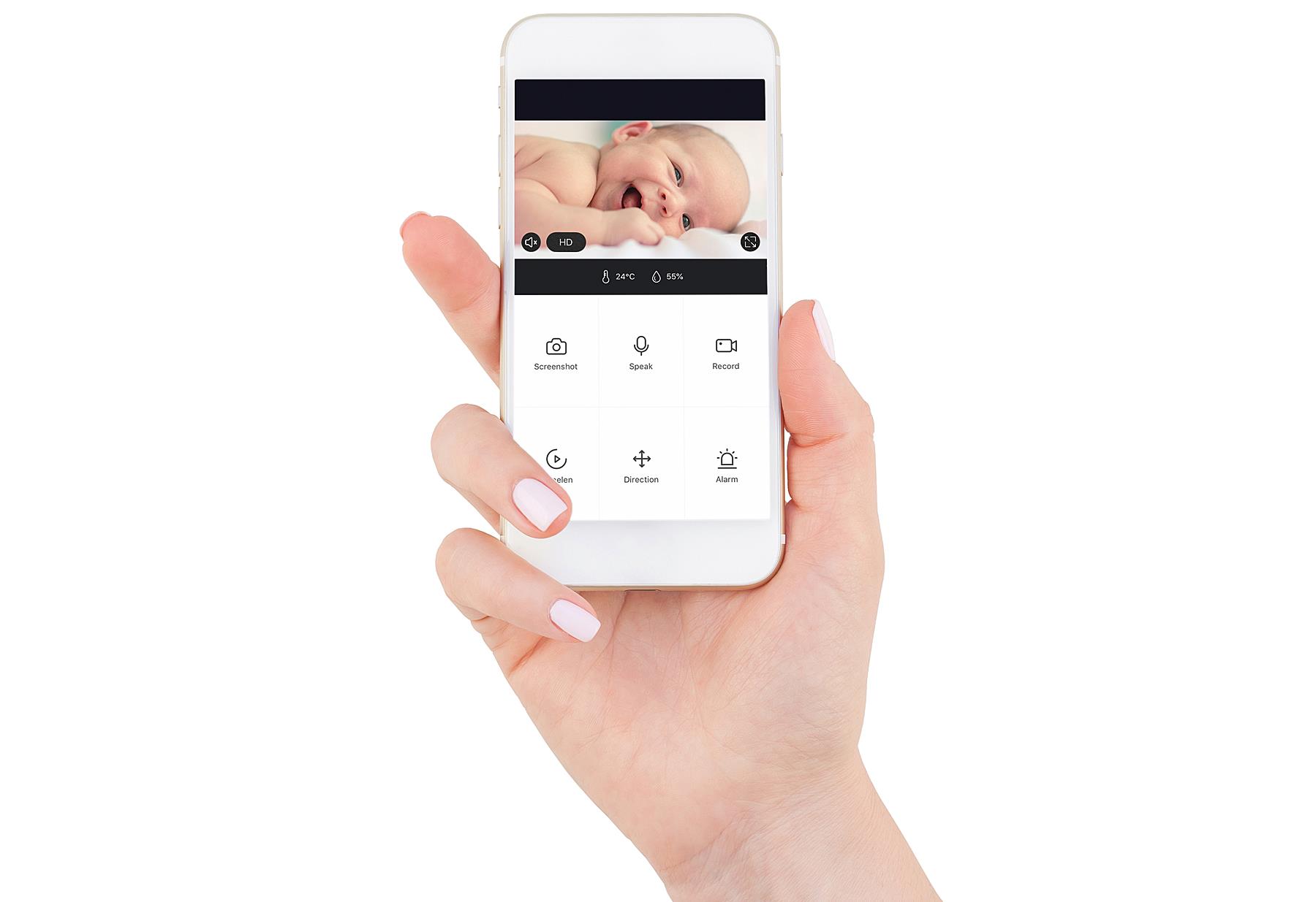 ALECTO Smartbaby10 wlan-Babyphone mit Kamera SMARTBABY10BK WLAN-Babyphone, Aufsatz für die Kamera, Halterung für die Wandmontage, Handbuch NL / EN / DE / FR, Universal-Handbuch