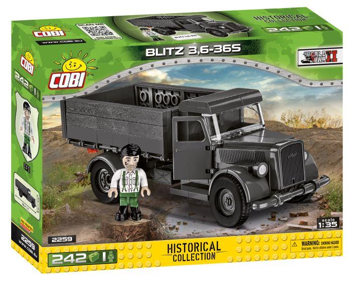 Blitz 3,6-36S ist ein Arbeitstier der Wehrmacht. Es gibt wohl keinen erkennbareren und universelleren Lastwagen, der mit dem Zweiten Weltkrieg in Verbindung gebracht wird. Der Blitz in vielen produzierten Varianten wurde während des Zweiten Weltkriegs an allen deutschen Fronten eingesetzt! Sie können einen Blitz 3.6-36S Truck aus einem Set von 242 COBI-Bausteinen bauen. Das Modell enthält mit hochwertigen Prints überzogene Elemente, die sich auch bei intensiver Nutzung nicht abnutzen. Das Design spiegelt auf einzigartige Weise die ursprünglichen Formen seines historischen Vorbilds im Maßstab 1:35 wider. Das Fahrzeug verfügt über bewegliche Räder, zu öffnende Türen und aufklappbare Seiten des Laderaums. Das Auto überrascht mit neuartigen Blöcken, die sich perfekt für den Bau von Fahrzeugen eignen und weitere Modifikationen und die Gestaltung eigener Strukturen erleichtern. Eine Mechanikerfigur mit hohen, bedruckten Schuhen und einem charakteristischen Kopf mit Fettspuren. Außerdem liegt der Box ein Stein mit dem Namen des Sets aufgedruckt bei. Opel 3,6-36S ist das perfekte Set für den Beginn des Abenteuers mit polnischen COBI-Bausteinen. Ein Muss für Liebhaber von Militär, Automobil und Geschichte. Separat können Sie den deutschen Nebelwerfer-Mehrraketenwerfer erwerben, der am LKW befestigt werden kann! 242 hochwertige Komponenten hergestellt in der EU von einem Unternehmen mit über 20-jähriger Tradition, erfüllen die Sicherheitsstandards für Produkte für Kinder, voll kompatibel mit anderen Marken von Klemm-Bausteinen, Blöcke mit Aufdruck verformen sich nicht und verblassen nicht während des Spiels oder unter Temperatureinfluss, Automodell im Maßstab 1:35, Mechaniker Figur, ein Block mit dem Namen des Sets.