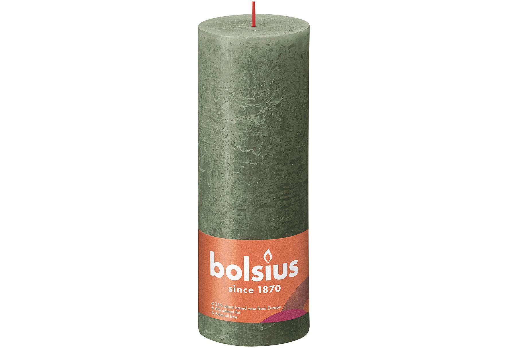 BOLSIUS Stumpenkerze Rustiko Shine 19x7cm olivegrünrnLieferumfang: 4 VPE