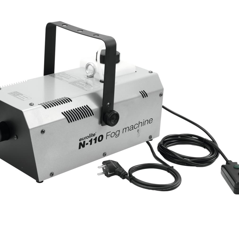 Licht braucht Nebel um sich zu entfalten, egal ob auf großen oder kleinen Bühnen. Bei einer Ausstoßweite von 5 Metern und einem Ausstoßvolumen von 120 m³/min ist die N-110 prädestiniert für den Einsatz bei kleineren Auftritten. Bedient wird sie über eine Kabelfernbedienung. Die Maschine wiegt lediglich 5 kg und kann wahlweise auf den Boden gestellt oder am Bügel aufgehängt werden.