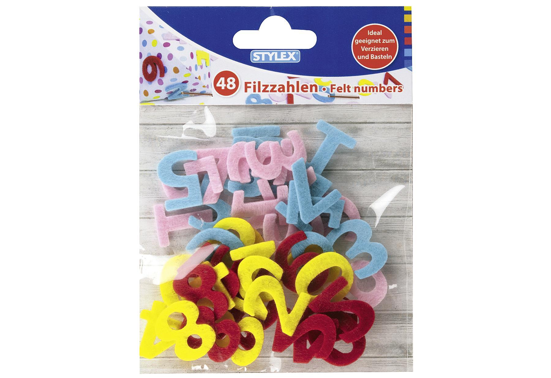 STYLEX Filzzahlen 0-9 farbig sortiert 48StückrnLieferumfang: 10 VPE