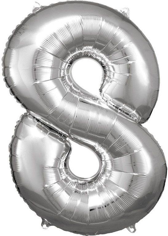 Grosse Zahl 8 Silber Folienballon N34 verpackt 53 cm x 83 cm