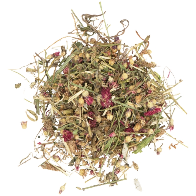 Der Blüten-Zauber beinhaltet hochwertige und schmackhafte Kräuter, die Kleintiere mit wohltuenden Inhaltsstoffen versorgen.