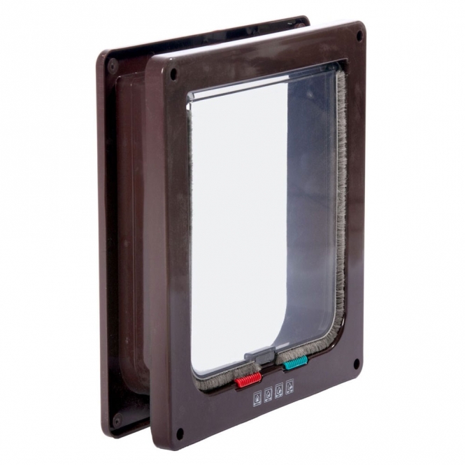 Die Karlie Katzentüren Porta erleichtern das Leben von Freigänger-Katzen und ihren Besitzern. Sie bestehen aus einem Rahmen, einem Scharniersowie einer horizontal befestigten Klappe. Letztgenannte wird vom Tiermit dem Kopf nach vorn geschoben, um dann durch die Öffnung zu gelangen. So kann die Katze selbständig und sicher zwischen Haus und Außenbereich wechseln. Ein Magnetverschluss und eine Bürstendichtung machen dieKatzentür wetterfest und zugluftsicher. Dank des Verschlusssystems kannzudem gesteuert werden, ob die Katze beliebig hinaus- und hineingehenkann oder ob die Nutzung eingeschränkt wird. Die mechanische Katzentürmit 4-Wege-Verschluss bietet die Wahl zwischen geöffnet (hinaus undhinein) und geschlossen sowie den Optionen nur hinein und nur hinaus.