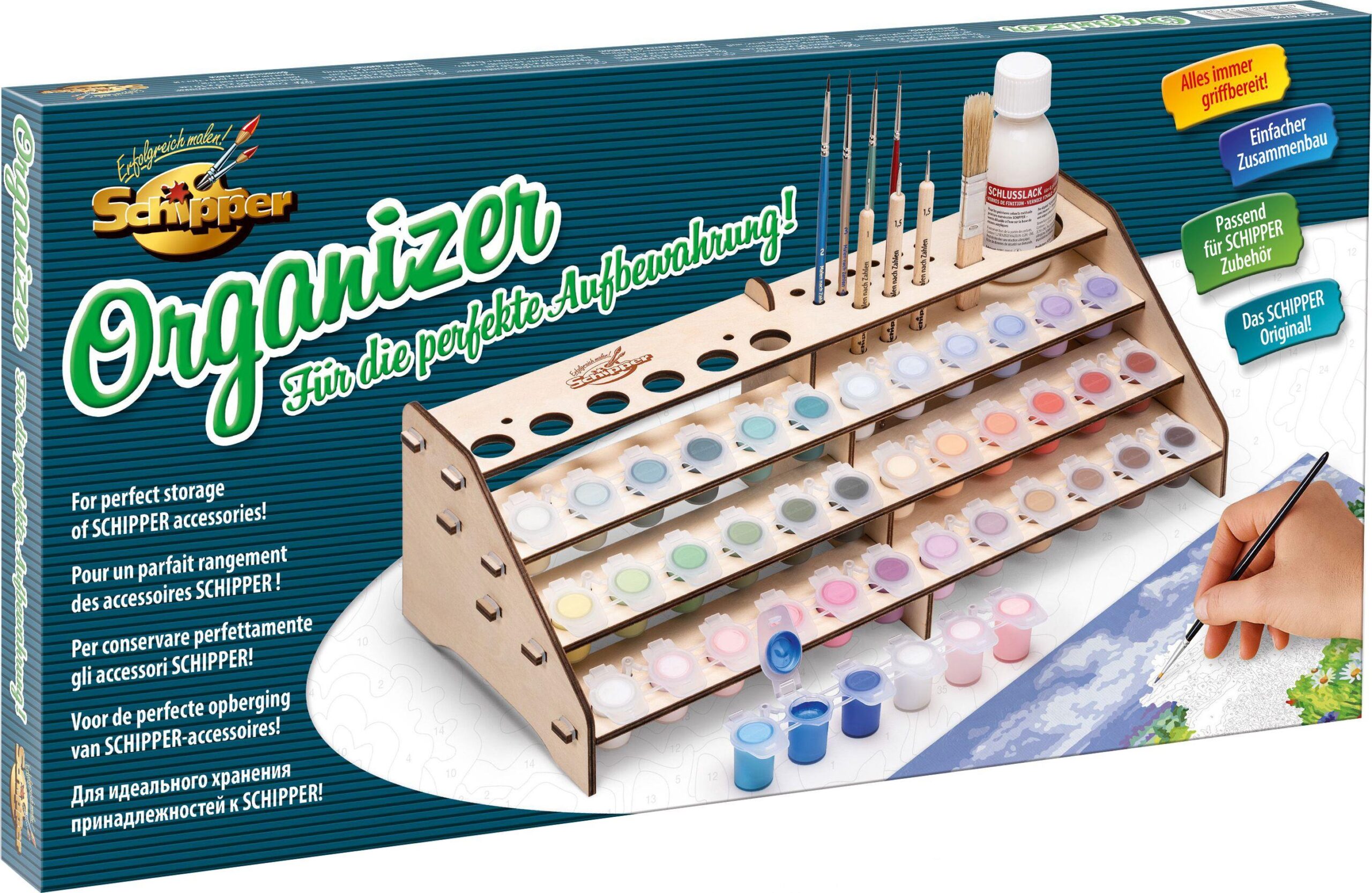 Entdecke den neuen Organizer von Schipper – die perfekte Lösung, um deine Malen-nach-Zahlen-Projekte ordentlich zu halten! Mit seinen Maßen von 19x39x10 cm bietet der Organizer ausreichend Platz für bis zu 7 Farbstränge, Schlusslack, Pinsel und die praktischen Dotting Pens. Nie wieder Unordnung beim Malen: Alle Utensilien haben ihren festen Platz und sind jederzeit griffbereit. Ob zu Hause oder unterwegs, der Organizer sorgt dafür, dass du immer gut organisiert bist und dich voll und ganz auf deine kreativen Werke konzentrieren kannst – der ideale Begleiter für alle Schipper-Fans!