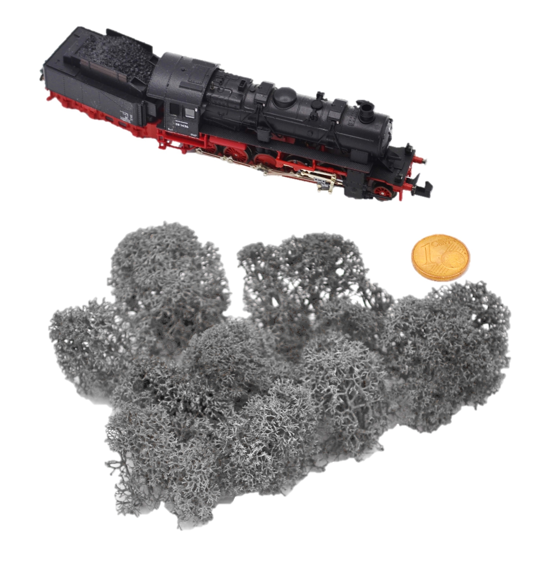 Muwse Islandmoos Titangrau passend zu Spur N, gefärbt, präpariert und 2-fach handgereinigt.