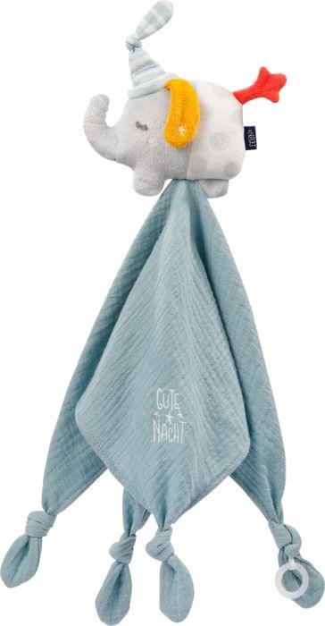 Der niedliche Elefant mit Schmusetuch aus der Gute Nacht Kollektion ist Einschlafhilfe und Kuschelfreund in einem. Der kleine Elefant liebt es zu Kuscheln und Schmusen und ist gerne Babys treue Begleitung zuhause und auf Reisen. Beim Einschlafen spendet das Baumwoll-Musselintuch Geborgenheit und die „Glow-in-the-dark“ Elemente nehmen dem Baby die Angst vor der Dunkelheit. Die kuschelweichen Materialien, der kleine Elefant sowie die geknoteten Enden laden zum Greifen, Fühlen und Knuddeln ein, sodass das Schmusetuch sicher bald nicht mehr aus der Hand gelassen wird. Am Silikonring werden herkömmliche Schnuller schnell befestigt, so passt der kleine Elefant stets auf Babys Schnuller auf./mit kleinem Elefant & Baumwolle-Musselintuch mit Schnullerring/für Babys und Kleinkinder ab 0+ Monaten/Obermaterial: Velours, Musselin, Jersey / Füllung: 100% Polyester/ideal als Geschenk zur Geburt, Taufe oder als Geburtstagsgeschenk für Babys und Kleinkinder