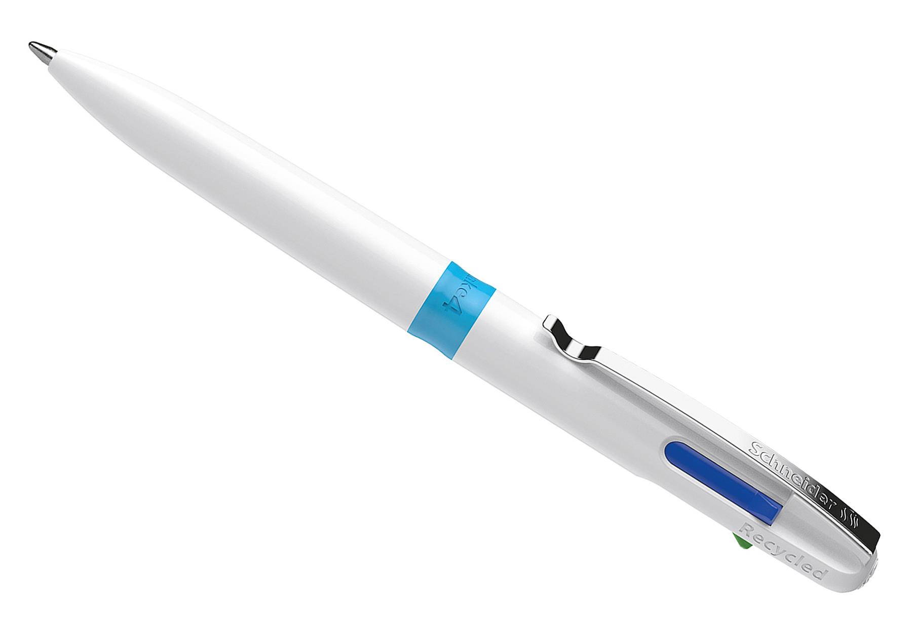 SCHNEIDER Vierfarb-Kugelschreiber Take 4 weiß-cyanrnLieferumfang: 10 VPE