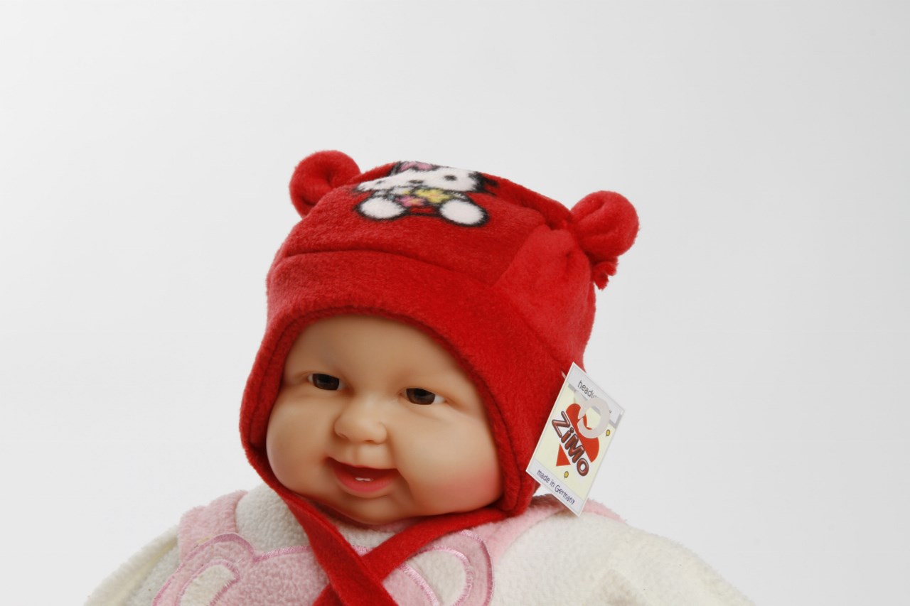 Kuschlig Mütze, die richtig warm hält und vor der Kälte schützt. Mit großem „Hello Kitty“ Motiv vorn.